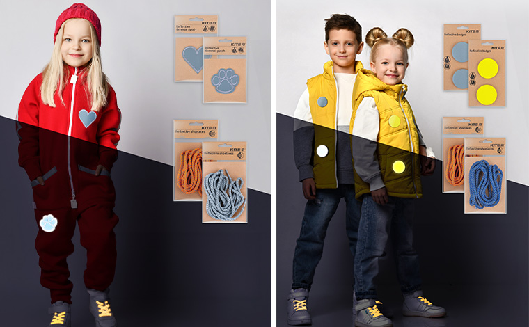 Світловідбивачі Kite представлені у різних форматах на будь-який смак. Їх можна комбінувати та носити усі разом. Чим більше флікерів – тим помітніші пішоходи на дорозі.