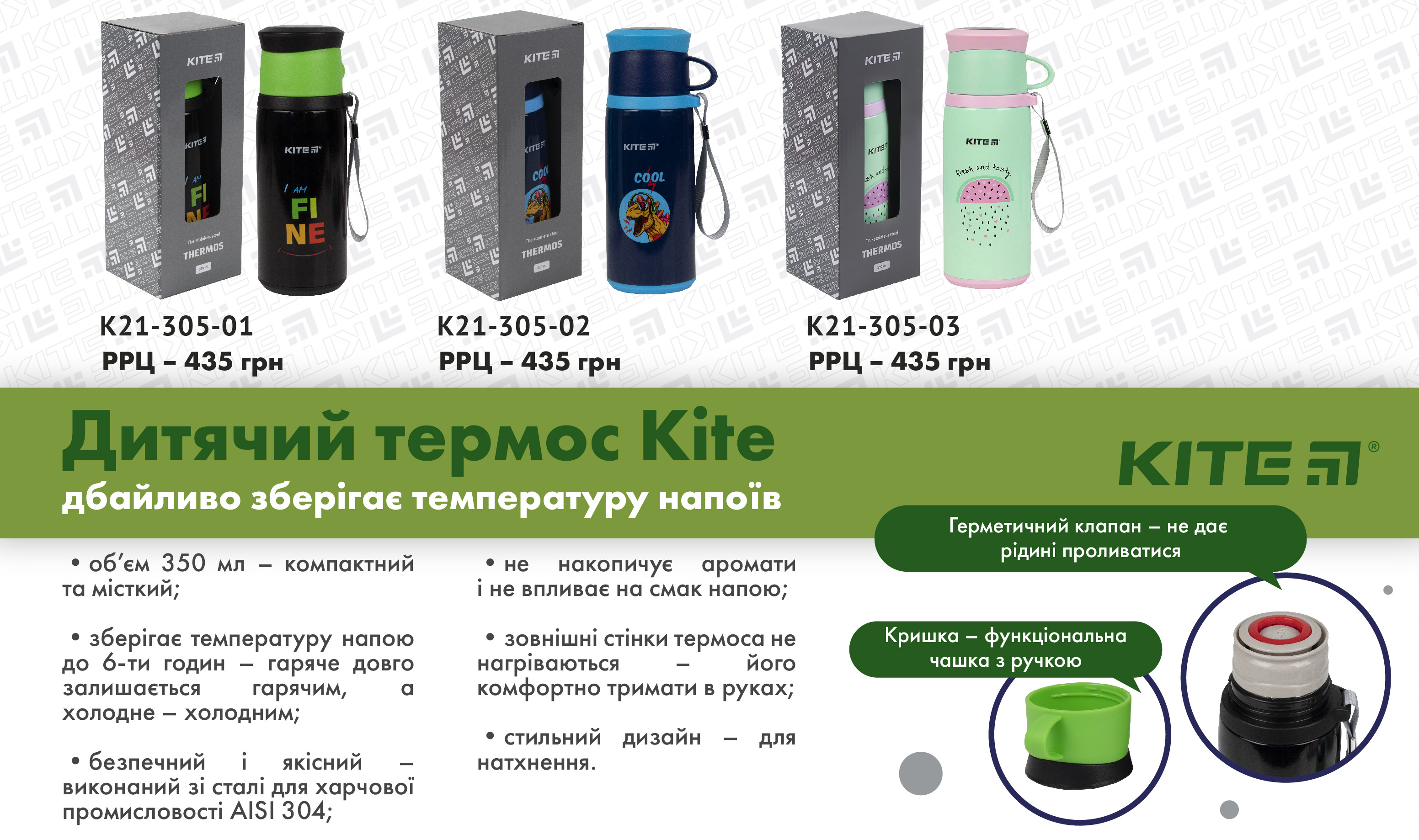 Дитячий термос Kite – красивий і завжди потрібний подарунок, який принесе дитині радість і користь. Він наповнить повсякденність затишними чаюваннями і зігріє домашнім теплом навіть далеко за межами домівки.