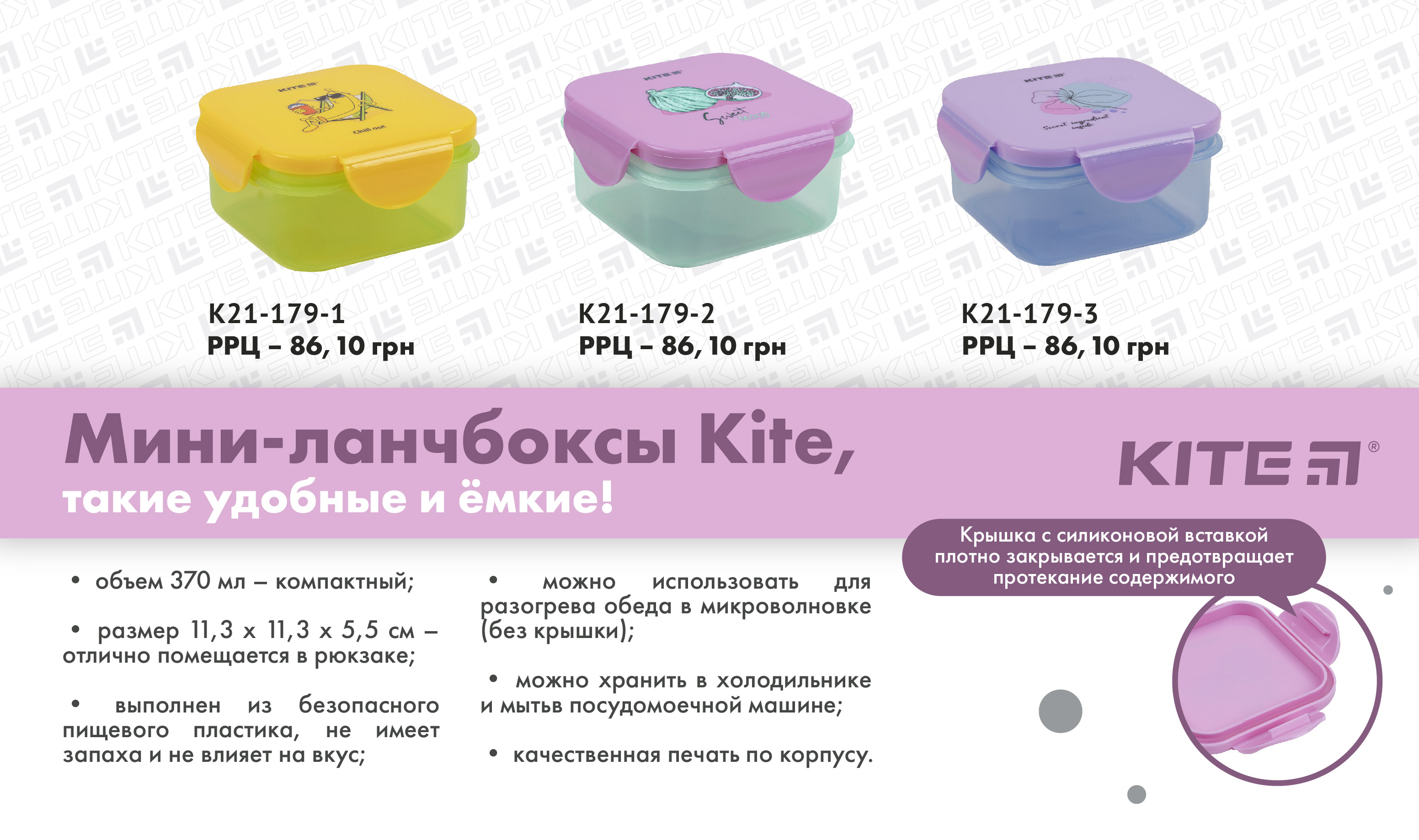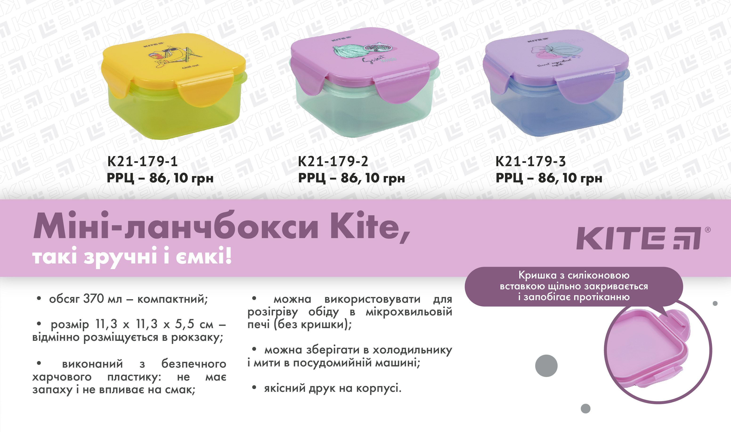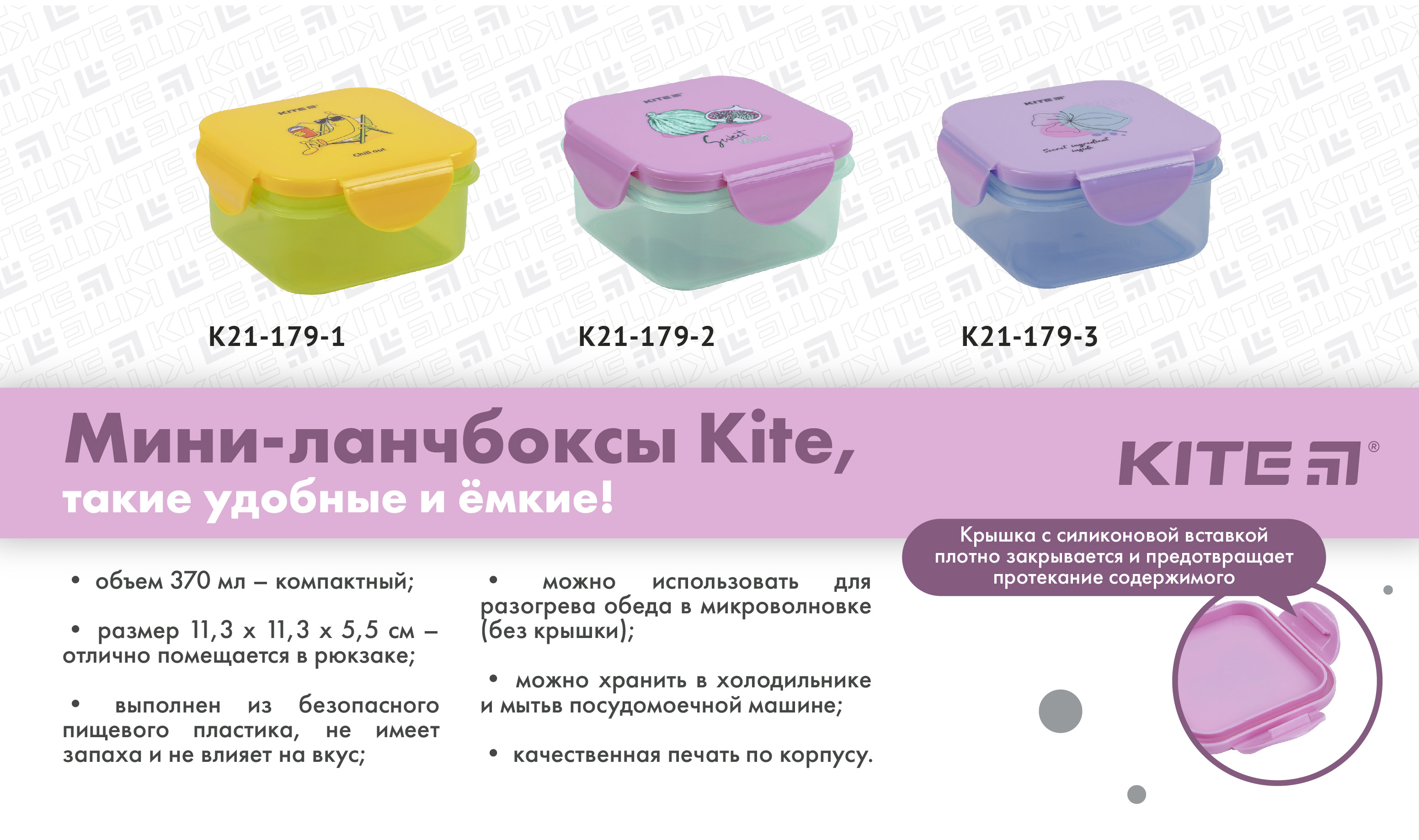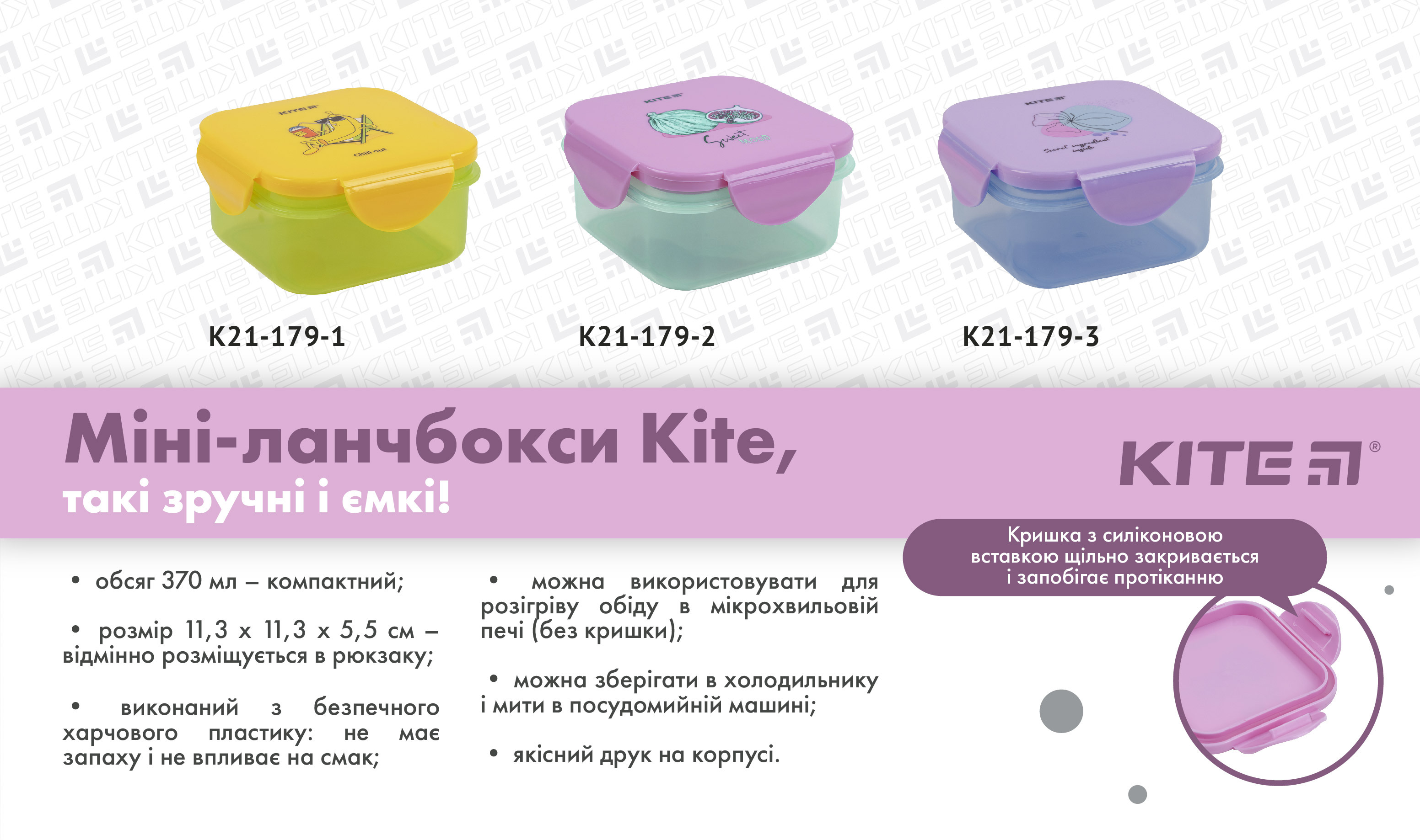 Ланчбокс Kite K21-179-3 – зручний, красивий і безпечний контейнер для ланчу. Незамінний для школи, роботи та дитячого садочку; актуальний на пікніку, в дорозі, в офісі і на прогулянці. З ним можна підкріпитися швидко, корисно і своєчасно.